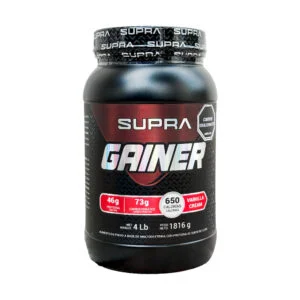 Supra Gainer es un producto de alto nivel calórico que contiene proteína concentrada de suero, creatina monohidratada ,aminoácidos de cadena ramificada (BCAA), glutamina y avena.